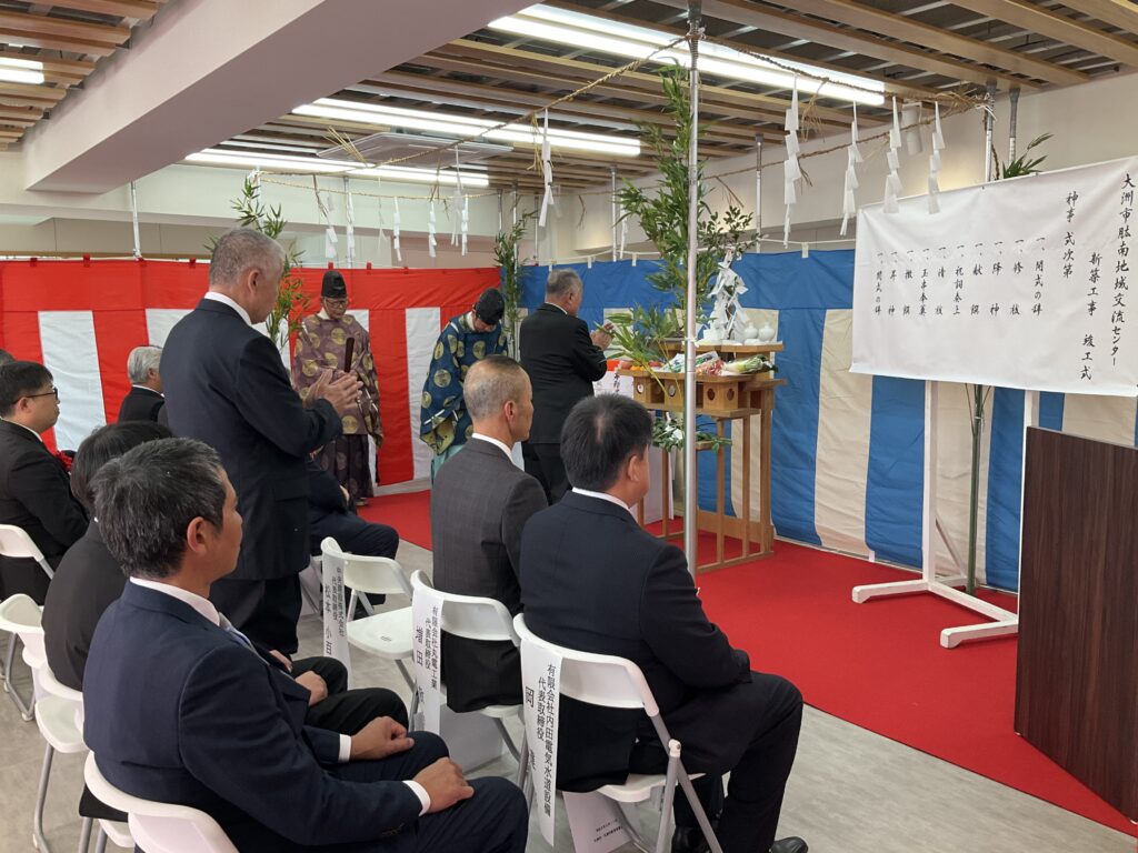 「大洲市肱南地域交流センター新築工事」の竣工式 神事が執り行われました