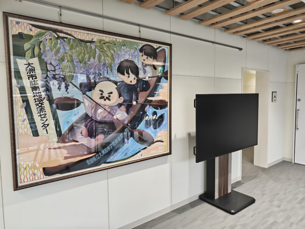 また、「しろしたテラス」入り口には大洲高校美術部一同による、横幅1700mm×高さ1400mmを誇る超特大の作品が飾られておりますので、お越しの際には是非ご覧ください!