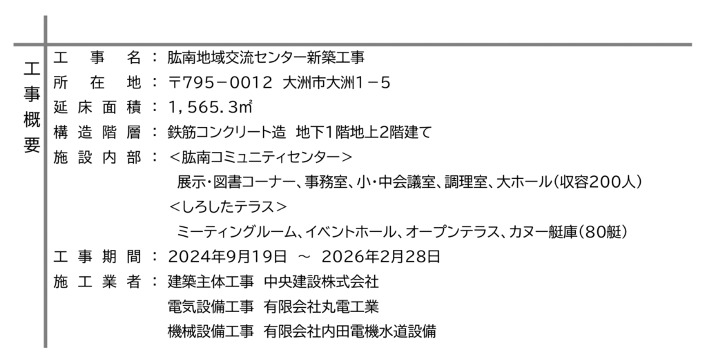 大洲市大洲にて施工を進めておりました「大洲市肱南地域交流センター」が、令和8年3月17日(火・大安)に竣工となりました。